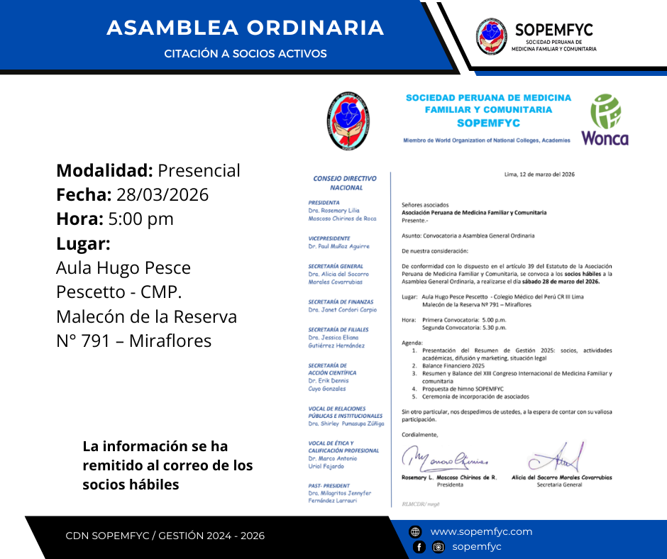 - NOTA INFORMATIVA: SOPEMFYC y SOCIMEP sellan alianza estratégica para fortalecer la formación y la investigación en Medicina Familiar y Comunitaria